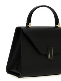 'Iside' medium handbag in Millepunte calf leather, Costa Valextra piping, fixed handle, flap turn-up closure, metal details, adjustable and removable shoulder strap. - Colour: Black - Composition: 100% calfskin leather (Bos Taurus) - Country Of Manufacture: Italy - Dimension: W 26 x H 20 x D 12 cm - MPN: WBES0056028LOC99NN