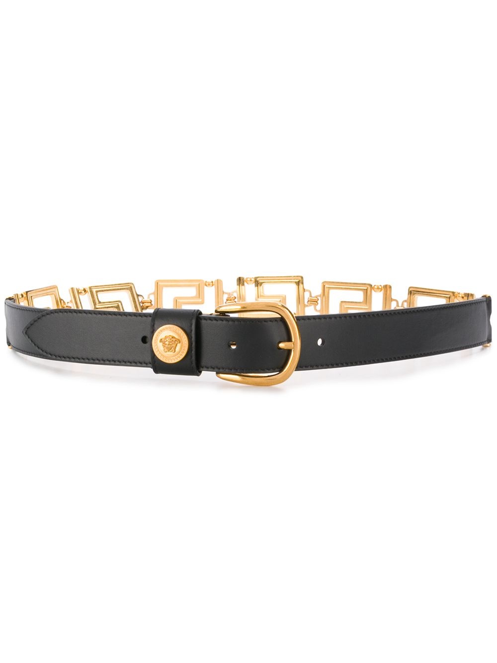 Belt with Greek Key buckle Medusa head motif, front buckle and perforated details. Produced in Italy Composition 100% leather, 100% metal Designer ID: DCDH311DV3T - Colour: Black - Composition: Leather - Country Of Manufacture: Not Selected - MPN: DCDH311DV3TK41OT