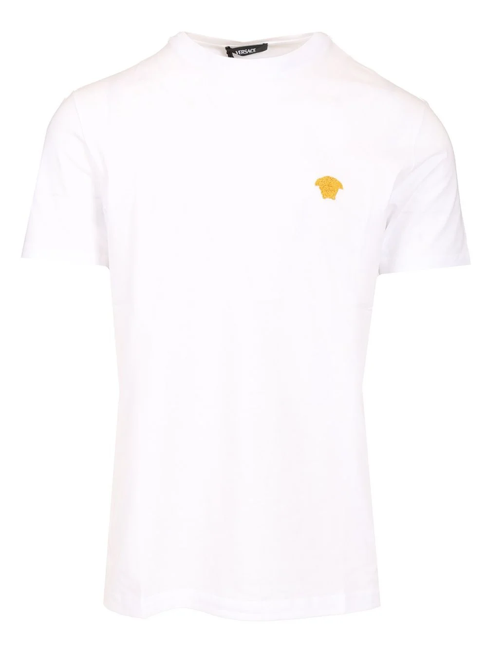 Cotton T-shirt by Versace, slim fit, small embroidered Medusa on the top left, short sleeves, crew neck and ribbed edges. - Colour: White - Composition: 100% CO 1.Outer Fabric:100% CO;Embroidery:100% PL;Trim:100% CO 1.Outer Fabric:100% Cotton;Embroidery:100% Polyester;Trim:100% Cotton - Country Of Manufacture: TN - MPN: 10084811A084891W000