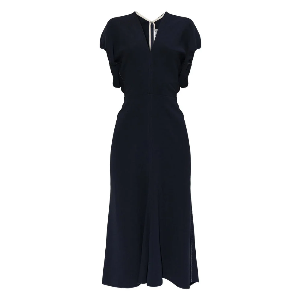 navy blue V-neck short sleeves midi length seam detail - Colour: Blue - Composition: Acetate: 47.0%, Viscose: 30.0%, Elastane: 3.0% - Country Of Manufacture: Portugal - MPN: 1126WDR006381ANAVY - Size Family: UK
