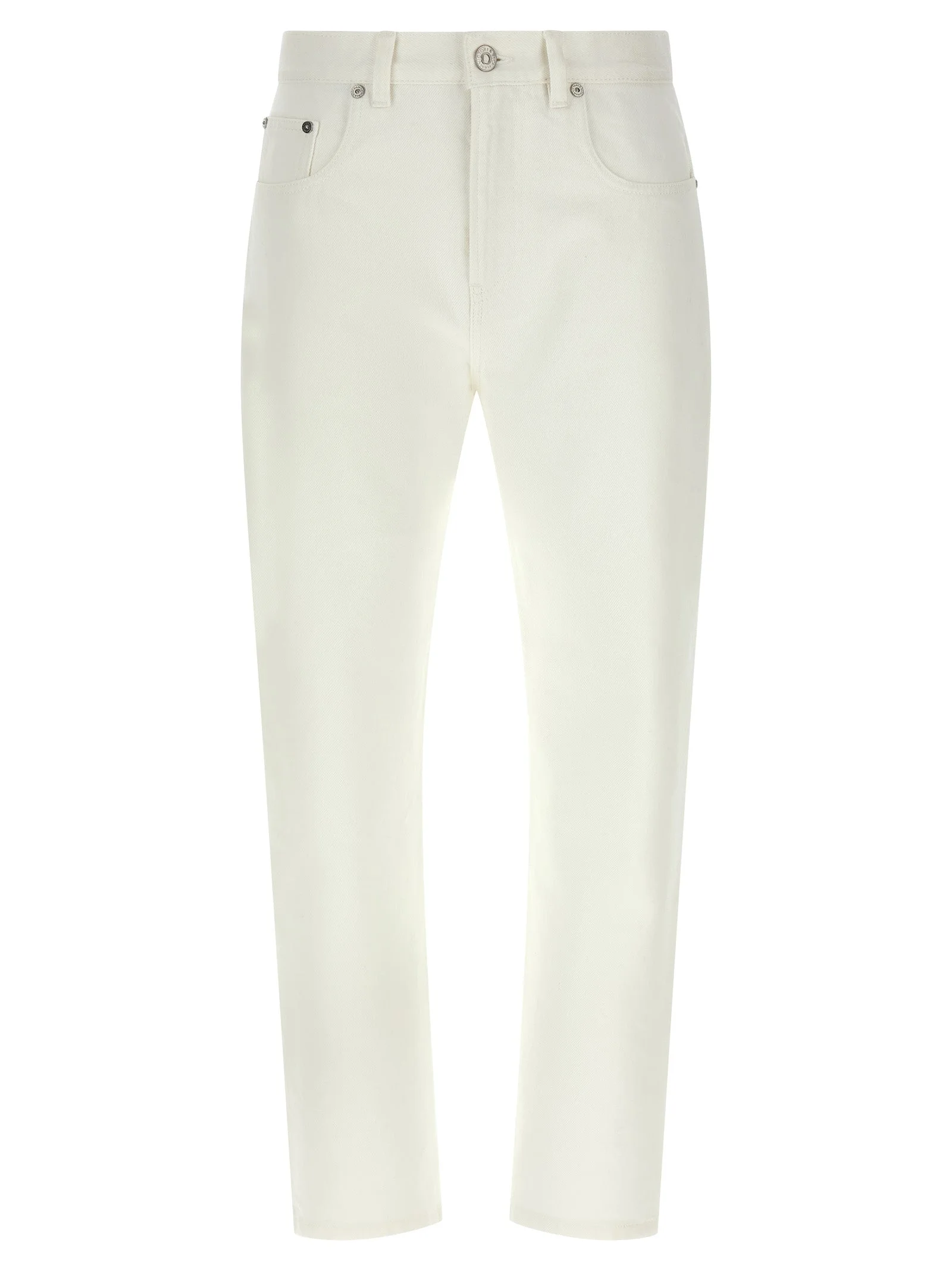 Medium weight non-stretch cotton denim jeans, crop model, high waist, straight leg, front zip and button closure, five pockets, back leather logo tag. - Colour: White - Composition: 100% cotton - Country Of Manufacture: Italy - Dimension: Slim fit - MPN: 1126DJE007018BWASHEDWHITE