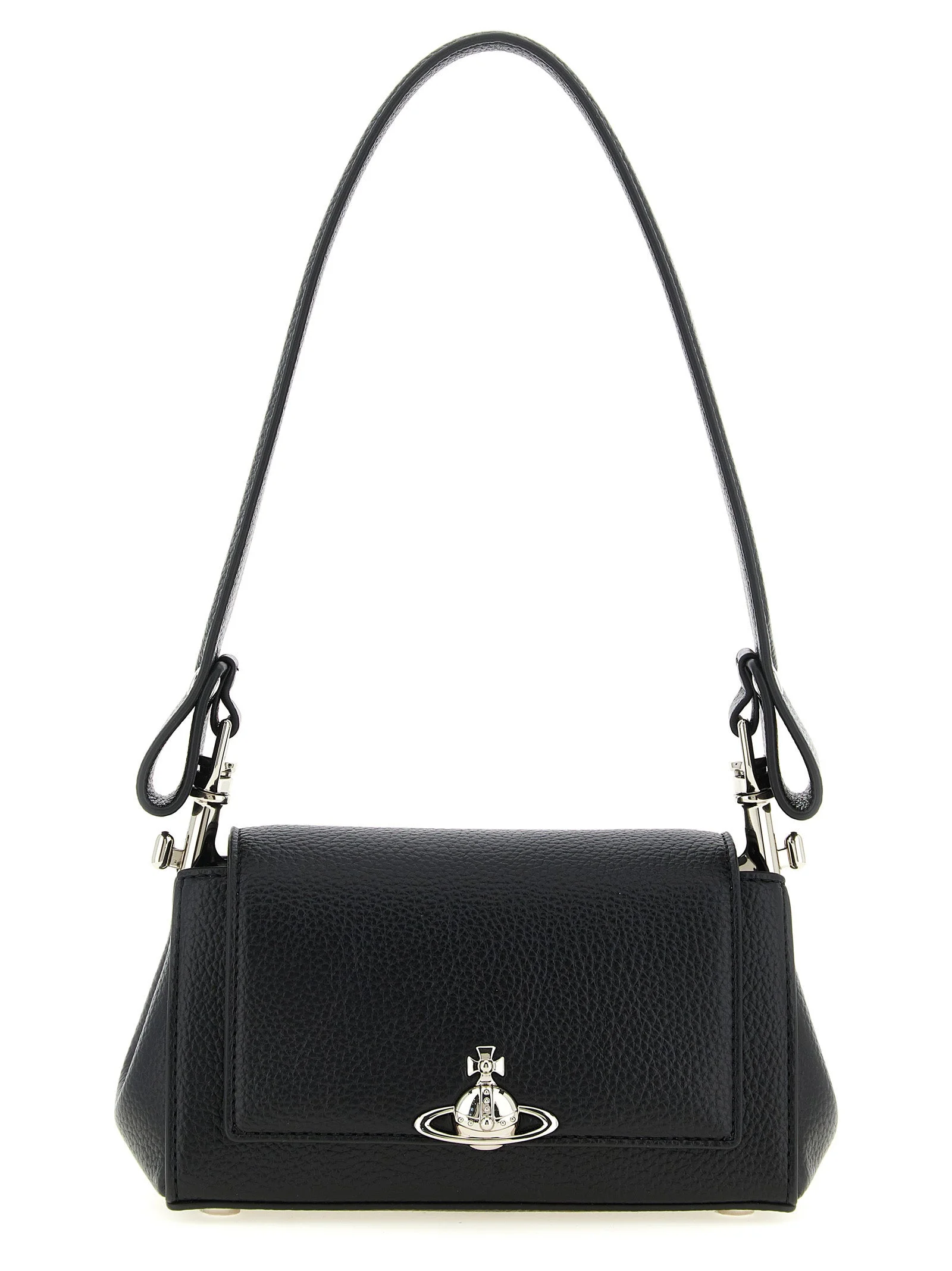 Small 'Hazel' shoulder bag in hammered leather-effect PU, magnetic flap closure with front metal Orb logo, removable handle, rigid base with metal feet, removable chain shoulder strap. - Colour: Black - Composition: 100% polyurethane - Country Of Manufacture: China - Dimension: W 19 x H 11 x D 8.5 cm - MPN: 4603000WWS000DN403
