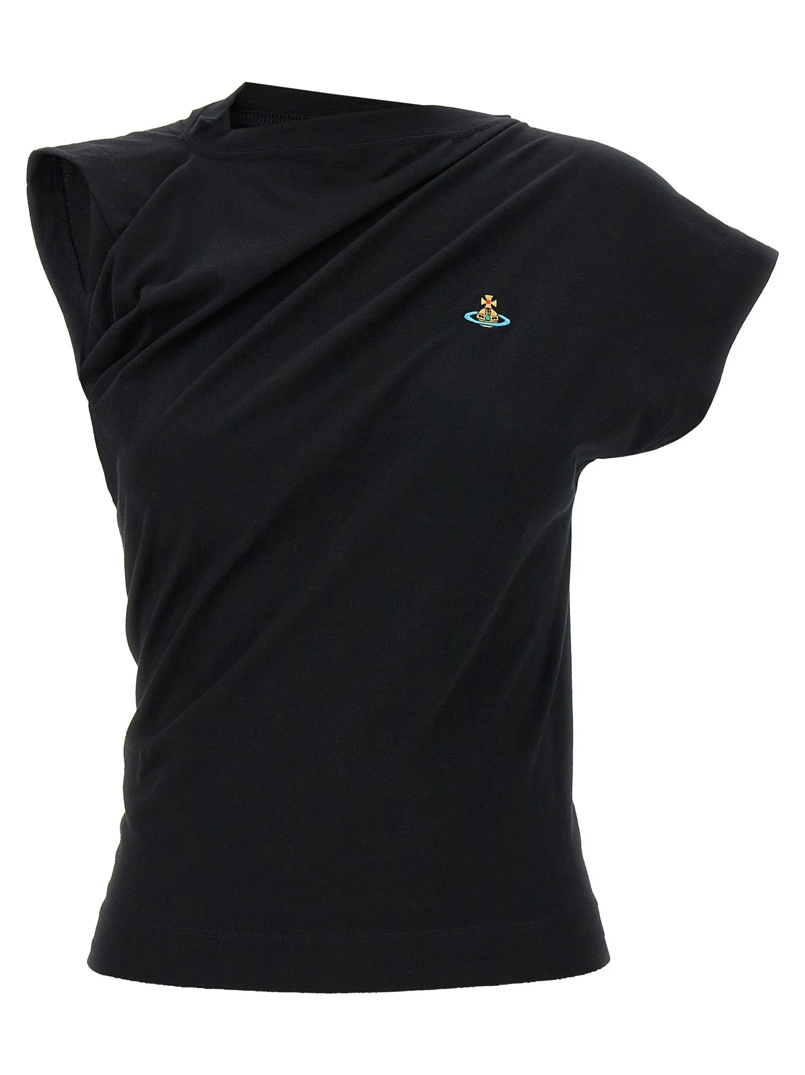 'Hebo' asymmetrical cotton crew neck top with logo embroidery on the chest. - Colour: Black - Composition: 100% cotton - Country Of Manufacture: Tunisia - Dimension: true to size fit - MPN: 1504000AJ001MN401