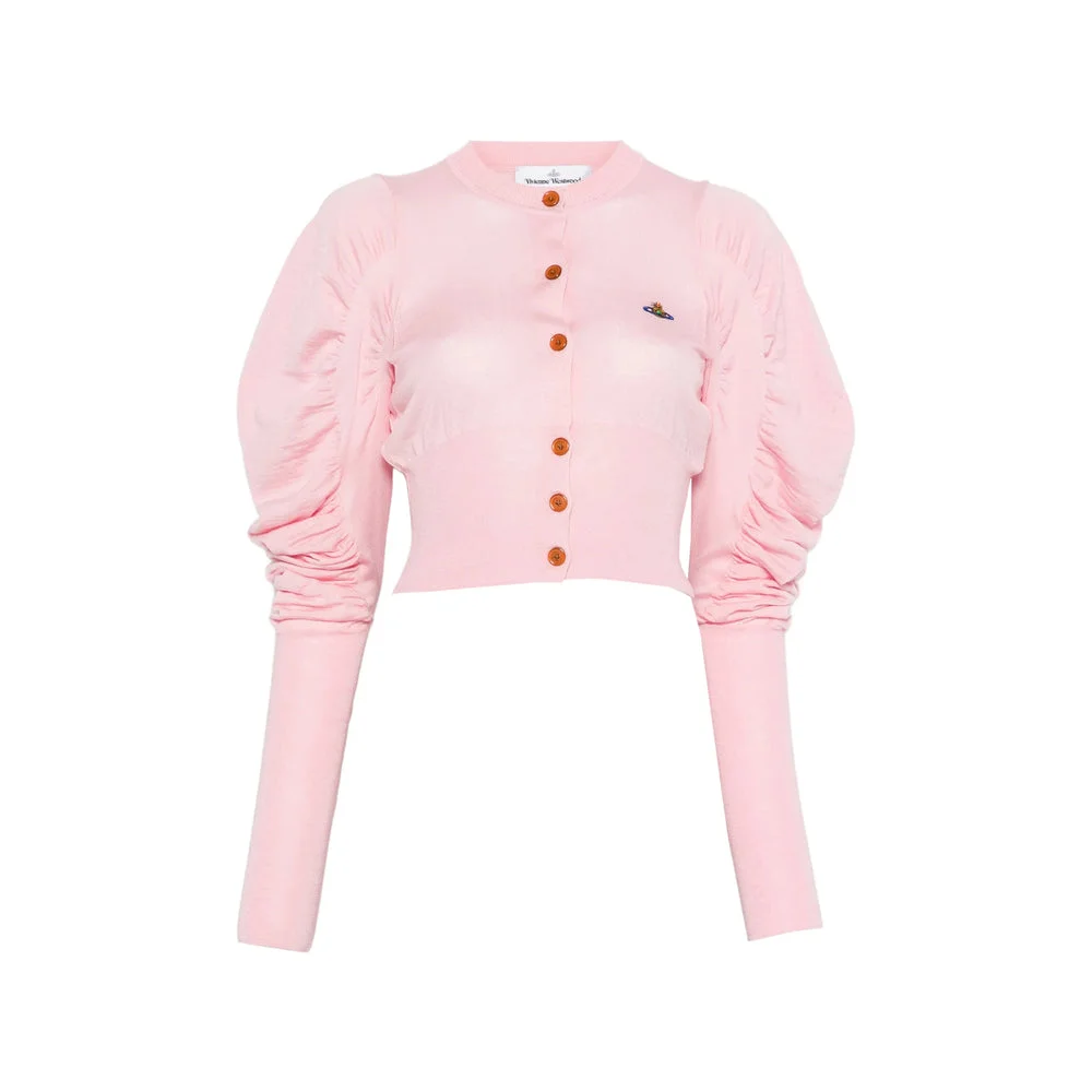 pink button fastening round neck puff sleeves ribbed hem - Colour: Pink - Composition: Silk: 30.0%, Merino: 70.0% - Country Of Manufacture: Italy - MPN: 1803007FY001AG401