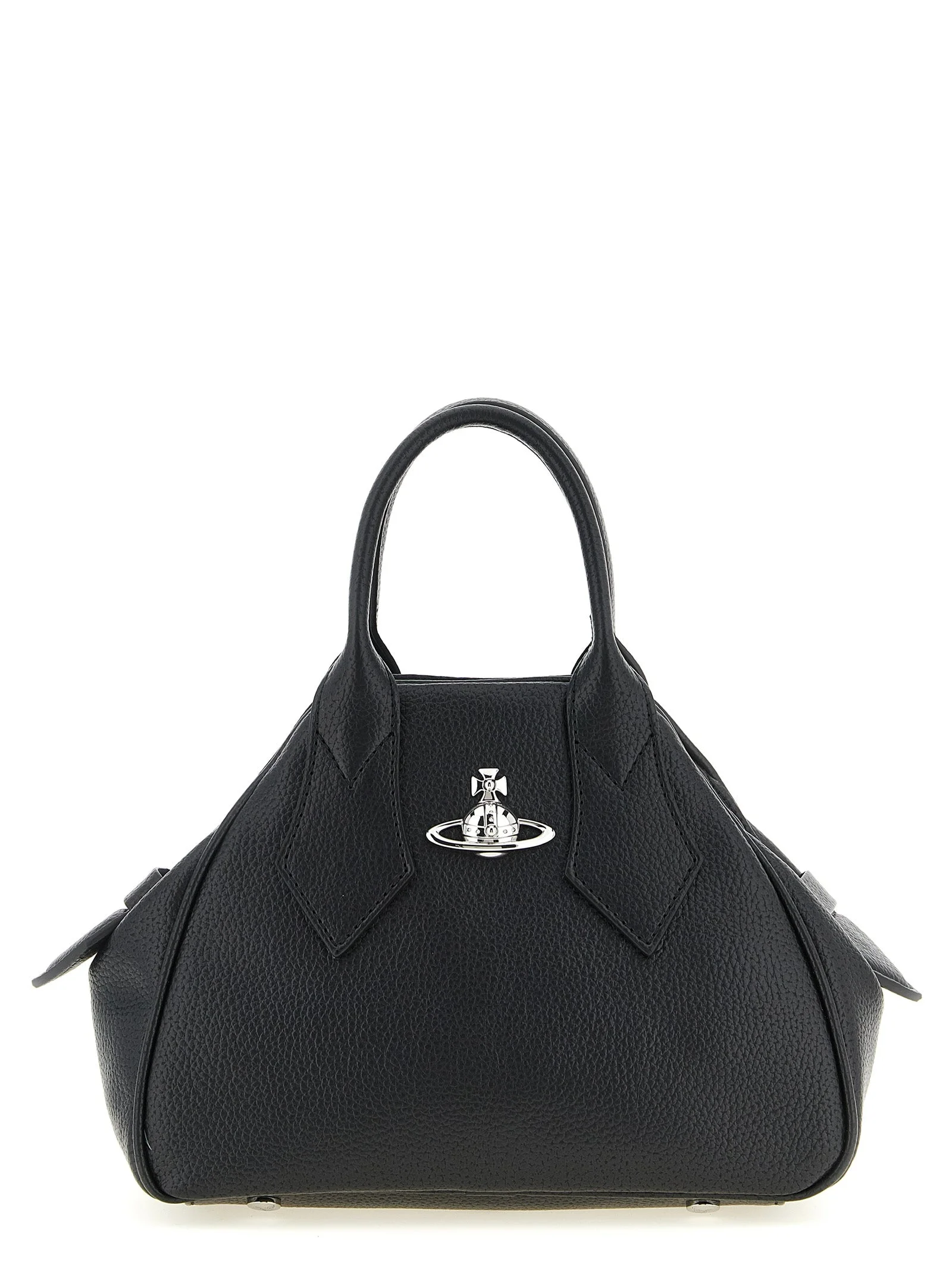 Small PU 'Yasmine' handbag with hammered finish, embossed metal 'Orb Bas Relief' logo on the front, double fixed handle, top zip closure, rigid base with metal feet, adjustable and removable shoulder strap. - Colour: Black - Composition: 100% polyurethane - Country Of Manufacture: Italy - Dimension: W 22 x H 16 x D 10 cm - MPN: 4703000MWS000DN403