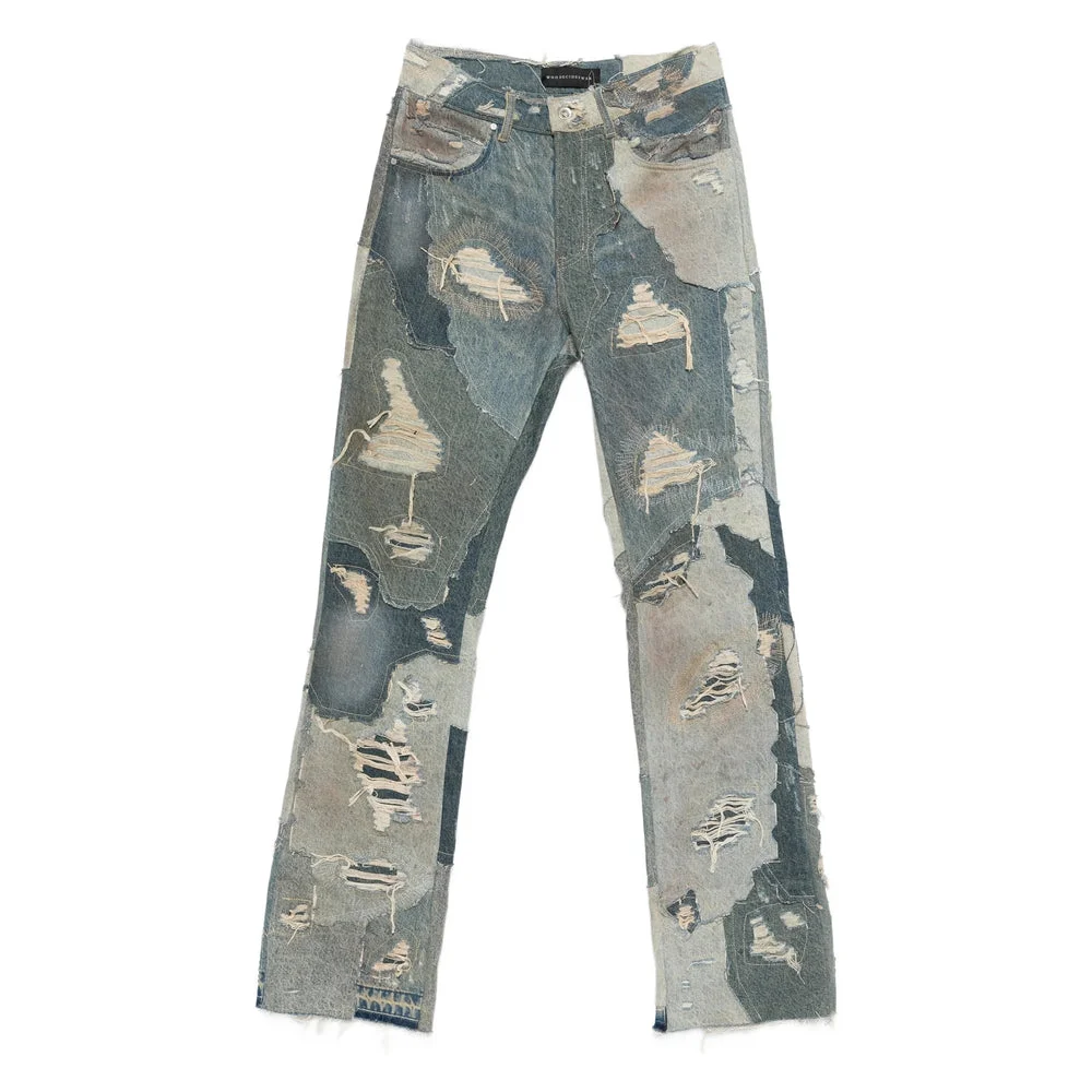 blue denim patchwork design distressed finish ripped details raw hem five pockets - Colour: Blue, Gray - Composition: Cotton: 100.0% - Country Of Manufacture: China - MPN: UNEARTHEDDENIDENIM