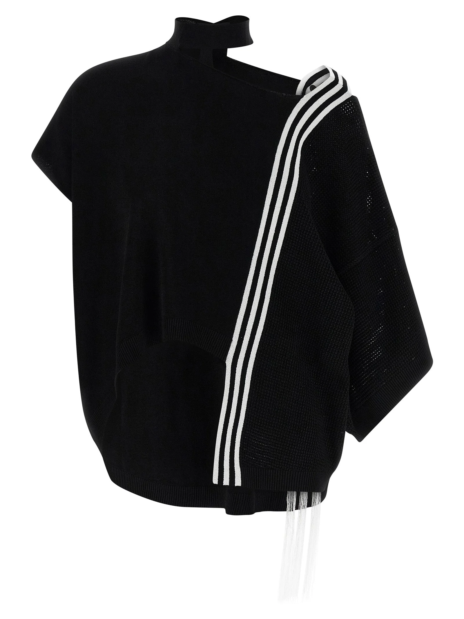 Y-3' jersey top with knit fabric on the left side, asymmetrical neckline with cut-out detail, adjustable shoulder straps, asymmetrical sleeves, and asymmetrical hem. - Colour: Black - Composition: 83% rayon, 17% polyester - Country Of Manufacture: Belgium - Dimension: Comfort fit - MPN: KR2397BLACK