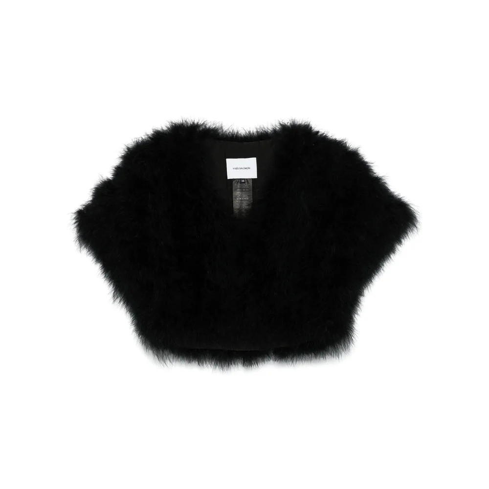 black hook fastening short sleeves cropped - Colour: Black - Composition: Lining Composition Silk: 100.0%, Outer Composition Turkey Feather: 100.0% - Country Of Manufacture: Bangladesh - MPN: 24EYC30546PLUXC99