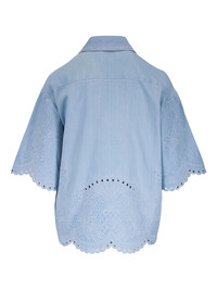 ice blue floral embroidery scalloped edge button fastening short sleeves point collar - Colour: Blue and green - Composition: 100% Cotton - Country Of Manufacture: China - MPN: 7214TRS263ICESTM