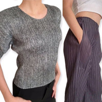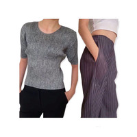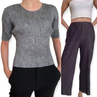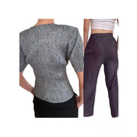 Vintage issey miyake fete pleats please pants & issey miyake pleats please top tag : issey miyake top MEASUREMENTS chest / pit to pit : 11 inches (stretchable) length / shoulder to hem : 20 inches (stretchable) bottom MEASUREMENTS waist : 23 inches (strechable) length out (outseam) : 35 inches (strechable) length in (inseam) 23 inches (strechable) open leg : 19 inches (strechable) gently used vintage condition