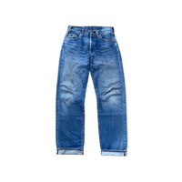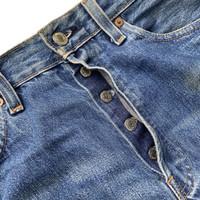 The definitive artifact of the San Francisco indigo legacy. This original Levi's 501 Selvedge "Redline" specimen is a high-net-worth archival asset, distinguished by the prestigious "Big E" (Capital E) red tab and the legendary "555" button embossing—the institutional hallmark of the Valencia Street Factory. This particular piece showcases a brutal, high-contrast indigo evolution, featuring razor-sharp whiskers and deep-set honeycombs that define the 20th-century denim aesthetic. DETAILS ERA: Verified Archival Vintage (Big E / Redline Era) Identity: Levi's 501 (Valencia St. Factory / Button 555) Construction: 100% Heavyweight Selvedge Denim Hardware: Original "555" Shank Buttons / Big E Red Tab Vibe: San Francisco Heritage / High-Contrast Indigo / Museum Quality MEASUREMENTS (Flat Lay) Waist: 31 inches Inseam: 33 inches Outseam: 42.5 inches Front Rise: 11 inches Knee: 9.5 inches Leg Opening: 8 inches