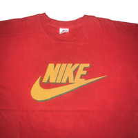 OG vintage nike centre swoosh tshirt single stitch made in ireland tag : nike tag size : large MEASUREMENTS chest / pit to pit : 24 inches length / shoulder to hem : 29 inches gently used vintage condition, see picture carefully please leave your phone number while purchasing, we need it for shipping terms THANKS & STAY SAFE ... some of the goods are waiting to be yours