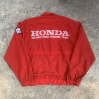 HONDA F1 Jacket SENNA ERA MUGEN MCLAREN JDM 80's GRAND PRIX AYRTON VTEC B18C vintage honda grand prix racing team F1 jacket tag : Honda F1 Collection size : L MEASUREMENTS chest / pit to pit : 25 inches length / shoulder to hem : 25.5 inches gently used vintage condition, see picture carefully please leave your phone number while purchasing, we need it for shipping terms THANKS & STAY SAFE ... some of the goods are waiting to be yours
