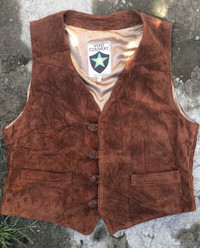 Genuine Leather - vintage vent couvert leather vest cowboy style