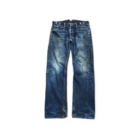 VINTAGE JAPANESE KATO BY HlROSHI KATO SELVEDGE DISTRESSED DENIM JEANS tag : KATO size : MEASUREMENTS waist : 33 inches outseam : 40 inches gently used vintage condition, see picture carefully please leave your phone number while purchasing, we need it for shipping terms THANKS & STAY SAFE ... some of the goods are waiting to be yours!