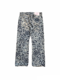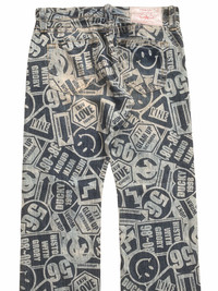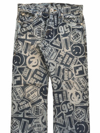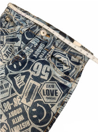 japanese brand co and lu over print denim co & lu tag : co & lu tag size : 27 pit to 33/34 MEASUREMENTS waist : 34 inches outseam : 39 inches inseam : 30 inches open leg : 28 inches gently used vintage condition, see picture carefully please leave your phone number while purchasing, we need it for shipping terms THANKS & STAY SAFE ... some of the goods are waiting to be yours