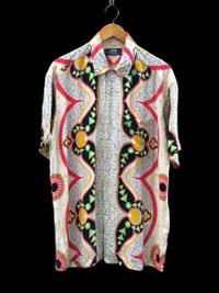 vintage JUN MEN all over print rayon hawaiian shirt tag : jun men import tag size : large MEASUREMENTS chest / pit to pit : 23 inches length / shoulder to hem : 31 inches gently used vintage condition, see picture carefully please leave your phone number while purchasing, we need it for shipping terms THANKS & STAY SAFE ... some of the goods are waiting to be yours