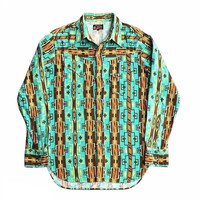 vintage indian motorcycles western shirt native american pattern tag : indian motorcycle tag size : medium MEASUREMENTS chest / pit to pit : 21 inches length / shoulder to hem : 30 inches gently used vintage condition, see picture carefully please leave your phone number while purchasing, we need it for shipping terms THANKS & STAY SAFE ... some of the goods are waiting to be yours