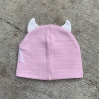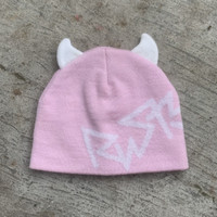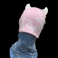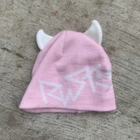 Rusty Devil Horn Bunny Pink Beanie Hat tag : Rusty tag size : one size gently used vintage condition, see picture carefully please leave your phone number while purchasing, we need it for shipping terms THANKS & STAY SAFE ... some of the goods are waiting to be yours