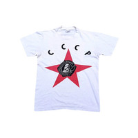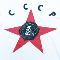 Vintage 1980s CCCP Vladimir Lenin big logo graphic T-shirt. Original vintage from the 80s featuring iconic Soviet / communist imagery. Bold and heavy graphic print with excellent preservation. • Era: 1980s • Theme: CCCP / Vladimir Lenin / Communism • Measurements: 21 x 28 inches • Condition: Excellent vintage condition • No holes • No stains • Clean fabric • Thick, crisp print Condition is outstanding for an authentic 80s piece. Natural signs of age may be present and are part of vintage character. Rare political graphic collectible. Vintage items may show minor signs of age. True 1980s original. Museum-level condition for its age. Ships worldwide. Please check measurements before purchasing. Tag : Stedman Size : Medium Fits L Boxy