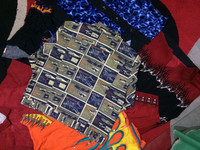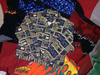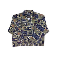 vintage 90s all over print trucker denim karl kani jeans tag : karl kani jeans tag size : xtra larger MEASUREMENTS chest / pit to pit : 27 inches length / shoulder to hem : 27 inches gently used vintage condition, see picture carefully please leave your phone number while purchasing, we need it for shipping terms THANKS & STAY SAFE ... some of the goods are waiting to be yours