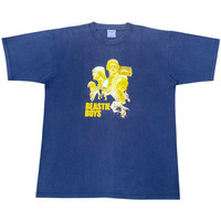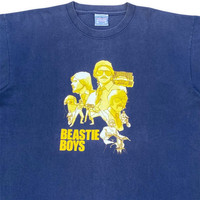 90s All Sport Beastie Boys Sabotage XL Navy Vintage Band Tee The 100% cotton textile presents a high-density knit structure typical of mid-1990s All Sport heavyweight blanks. A thick plastisol application forms the central yellow motif squarely across the chest. Structural integrity remains intact through twin-needle stitching at the hem and both cuffs. Navy blue pigment shows an even, natural fade consistent with standard wash cycles over the decades. High-tension ribbing at the collar prevents stretching or drooping during regular wear. The boxy silhouette drops straight from the shoulders down to the waistline. Stress points at the armpits display no signs of thread separation or weakness. Shipping • DHL EXPRESS worldwide • Dispatched within 24 hours of cleared payment Condition • Gently worn vintage state • Even sun fading throughout the body • Print shows appropriate age with no heavy peeling Measurements • Pit to Pit: 23 inches • Top to Bottom: 30 inches Details & Specifications • Brand: All Sport Heavyweight • Era: 1990s • Origin: Assembled in Mexico (US Components) • Material: 100% Cotton • Size: XL (48)