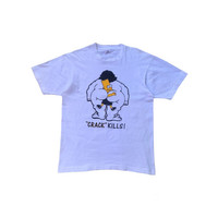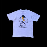 A high-velocity artifact of 1990s street-level rebellion. This "Crack Kills" Bart Simpson satire tee is a definitive document of the "Bootleg Bart" phenomenon that subverted global pop culture. Printed on a premium Fruit of the Loom blank with verified Made in USA provenance, this piece represents the pinnacle of early 90s counter-culture apparel. The garment features a masterfully preserved single-stitch construction on both sleeves and hem, a hallmark of authentic vintage integrity. The white cotton has developed a superior archival hand-feel, providing the perfect canvas for its controversial and culturally significant graphic. This is a rare, investment-grade acquisition for serious collectors of 20th-century pop-art archives. ⸻ HISTORY & RELATED INFLUENCE The "Bootleg Bart" movement of the early 90s remains one of the most important eras in streetwear history, where underground artists repurposed mainstream icons for social commentary. This "Crack Kills" iteration is widely regarded as a grail among Simpsons archivists. Authenticated by its period-correct FOTL "Flag" tag and original single-stitch seams, this tee is a verified survivor of the golden age of American satire. ⸻ DETAILS ERA: Early 1990s (Verified Original) Identity: "Crack Kills" Bart Simpson Satire Construction: Single Stitch Sleeves & Hem Fabric: 100% Cotton / Heavyweight Vintage Blend Tag: Fruit of the Loom (FOTL) Made in USA Vibe: 90s Counter-Culture / Streetwear Archive / Rare Grail ⸻ MEASUREMENTS (Flat Lay) Tag size: Large (L) Chest (pit to pit): 21.5 inches Length (shoulder to hem): 28.5 inches ⸻ CONDITION Museum-Grade Vintage Condition. The white cotton remains remarkably bright and vibrant. The graphic print is exceptionally crisp with virtually no significant cracking, a rarity for white tees of this vintage. The FOTL tag is perfectly intact and legible. Zero structural flaws, stains, or dry rot—a pristine specimen of 90s underground history. ⸻ SHIPPING WORLDWIDE SHIPPING VIA DHL EXPRESS. Fast, secured, and fully tracked international delivery. Dispatched from the WaroengKartini45 global ecosystem. Estimated arrival: 3-7 business days worldwide. ⸻ THE WAROENGKARTINI45_ STANDARD Operating as a Global Top 0.1% Seller with a consolidated network of over 800+ total transactions. We are the institutional authority for verified vintage archives and high-value cultural artifacts. ⸻ AUTHENTICITY NOTE Guaranteed authentic vintage. The single-stitch weave-density, the specific oxidation of the screen-print ink, and the FOTL USA tag-stock are consistent with early 1990s manufacturing standards. ⸻ High-Net-Worth Pop Culture Archivists Collectors of "Bootleg Bart" Masterpieces Museums of 20th Century Americana Luxury Streetwear Stylists & Creative Directors ⸻ Extreme rarity in this pristine "White" condition Verified Single Stitch and FOTL USA provenance Culturally explosive "Crack Kills" graphic variation High liquidity and appreciation value in the vintage market