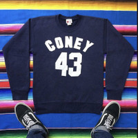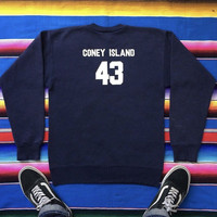 Vintage 1990s Bassett-Walker "Coney Island 43" Sturdy Sweats Sweatshirt. This is not a common fleece; it is a high-density textile artifact engineered to outlast modern fast-fashion by decades, capturing the rugged, salt-caked heritage of Brooklyn’s legendary shoreline. DETAILS • Brand: Bassett-Walker (Sturdy Sweats Archive) • Category: Archival American Heavy-Duty Sportswear • Era: Early-to-Mid 1990s • Origin: Made in U.S.A. • Construction: Industrial Fleece Knit • Graphics: Original Block-Type Screen Print • Size on Tag: Large SIZE & MEASUREMENTS (Measured Flat) • Chest (Pit to Pit): 19 inches • Length (Shoulder to Hem): 25 inches CONDITION This piece has been preserved with the utmost care, retaining its original deep navy hue and structural rigidity. The neck label is crisp, and the interior fleece remains plush yet dense. Zero catastrophic flaws—no holes, no rips, and no graphic degradation. It stands as a museum-grade example of 90s Bassett-Walker craftsmanship.