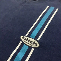Authentic vintage Bitch Skateboards t-shirt from the 1990s, representing one of the most controversial and culturally important brands of the early hardcore skate era. Bitch Skateboards emerged in the late 1980s as part of the anti-corporate, anti-authority movement within American skateboarding, known for aggressive graphics, raw messaging, and underground distribution. Original apparel from this brand is increasingly scarce due to limited production and censorship pressures at the time. This example features a distinctive vertical racing stripe graphic running from shoulder to hem on the left side — a minimalist but striking design language rarely seen on surviving Bitch Skateboards tees. Single stitch construction confirms original vintage production, not a modern reproduction. A true archive piece for serious skate history collectors. ⸻ DETAILS • Brand: Bitch Skateboards • Era: 1990s • Origin: USA • Color: Navy Blue • Fabric: Cotton • Construction: Single Stitch • Tag: Bitch Skateboards ⸻ SIZE & MEASUREMENTS Tag Size: Medium Measured flat: • Chest (pit to pit): 18 inches • Length (shoulder to hem): 25 inches ⸻ CONDITION Very good vintage condition. Color remains deep with natural age-appropriate wear. Graphic is intact and clean. No major stains or structural damage. Overall wear is consistent with early 1990s skate apparel. ⸻ Original vintage 1990s Bitch Skateboards t-shirt. Single stitch construction and correct era branding confirm authenticity. Not a reprint or later reproduction. ⸻ • Vintage skateboarding collectors • Hardcore skate history archivists • Fans of 80s–90s underground skate culture • Institutional or long-term private collections ⸻ Shipping: 🌍 Paid worldwide shipping — reinforces archive positioning ⸻ Why buy from WAROENGKARTINI45_? • Official Grailed Global Top 0.1% Seller • Worldwide Express Shipping via DHL Express • Trusted by 800+ elite international collectors