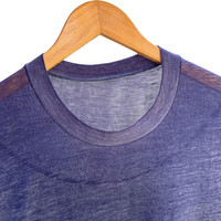 True vintage blank t-shirt with extremely thin, paper-like fabric. Naturally distressed through age and wear, featuring beautiful fade and texture impossible to replicate. A perfect base layer or archive blank for collectors who appreciate authentic vintage wear. • Era: Estimated 1980s - 1990s • Size: M (see measurements) • Condition: Heavy vintage distressing, paper thin fabric • No holes affecting wearability (please see photos) Vintage item – all signs of wear are part of its character. MEASUREMENTS Chest / Pit to pit : 20 Inches Length / Shoulder to hem : 27 Inches
