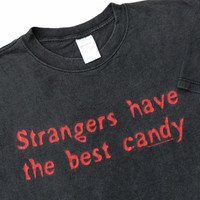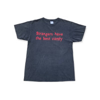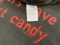 Underground Americana Slogan Tee – Tultex USA Vintage ⸻ This piece is elevated into the Underground Americana Museum Tier, a classification reserved for garments that document subcultural language, irony, and pre-digital counter-expression rather than commercial branding. The slogan “Strangers have the best candy” is a textbook example of late-1990s American underground humor—dark, confrontational, and intentionally discomforting. These statements circulated within skate culture, indie scenes, and DIY networks before algorithm-driven censorship and brand sanitization reshaped public expression. For Japanese slogan-tee collectors, this shirt aligns directly with the long-standing appreciation for: • English irony without explanation • Linguistic tension between innocence and threat • Authentic US-made blanks with natural aging Japanese archives value what the phrase represents, not just what it says. This tee functions as a language artifact, comparable to early Supreme, Alien Workshop, or unbranded skate slogans—before hype mechanics existed. Printed on a Tultex heavyweight Made in USA blank, the naturally faded black body (hideung faded) confirms real wear and age, enhancing its desirability as an authentic object, not a preserved novelty. This is not nostalgia fashion. This is cultural residue. ⸻ DETAILS • Era: c. late 1980s – early 1990s • Brand / Blank: Tultex • Fabric: 100% cotton • Print: Single-color front slogan • Construction: Single stitch • Color: Black (naturally faded) ⸻ SIZE & MEASUREMENTS (measured flat) • Chest (pit to pit): 21 in • Length (shoulder to hem): 29 in ⸻ CONDITION Archive-grade vintage condition with authentic fade and surface wear consistent with age. No structural damage observed. ⸻ HISTORY & RELATED INFLUENCE This slogan aligns with the same underground lineage as FUCT, early Supreme parody tees, Mike Kelley–era art school humor, and American Apparel pre-corporate irony. In Japan, similar English taboo slogan tees entered the archive canon via Harajuku Ura-Harajuku buyers and fashion editors, reframing them as cultural artifacts rather than jokes. ⸻ SHIPPING Worldwide paid shipping available. Prepared and packed to archive standards for international collectors. Handled as a collectible artifact, not casual apparel. ⸻ Why buy from WAROENGKARTINI45_? We operate as an institutional-grade archive seller, not a trend reseller. Every piece is positioned with cultural context, market literacy, and long-term value in mind. No reprints. No reproductions. No fast fashion dilution. ⸻ AUTHENTICITY NOTE This garment is an original vintage item, not a modern reproduction or parody reprint. Fabric wear, print texture, and blank construction confirm period originality. ⸻ • Japanese slogan-tee archive collectors • Underground Americana historians • US / JP private museum curators • Collectors of pre-internet counterculture textiles