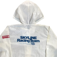 A supreme artifact of JDM (Japanese Domestic Market) racing history. This vintage light nylon jacket was issued exclusively to the Nissan Prince Dealers Club (PDC) "P'Staff" (Prince Staff) members to commemorate the 7th Anniversary of the Skyline's Return to the Circuit. This specific "P'Staff" edition was not available to the general public, making it a "Staff Only" holy grail. It celebrates the monumental era when the Skyline re-established its dominance on the track, marking a "New Page in The History of Skyline's Challenging Spirit." Featuring the iconic "P'Staff" patch on the pocket and the legendary "Skyline Returns" manifesto on the back. A mandatory piece for serious GT-R archivists and R32/R33/R34 owners. ⸻ DETAILS • Brand: Nissan Skyline (Prince Dealers Club Official) • Era: 1990s • Origin: Japan • Color: White • Fabric: Premium Nylon • Construction: Zip-up with integrated hoodie • Graphics: High-quality back print & "P'Staff" pocket patch • Tag: Official PDC / Prince Staff Issue ⸻ SIZE & MEASUREMENTS Tag Size: N/A (Fits like Large / XL) Measured flat: • Chest (pit to pit): 23.5 inches • Length (shoulder to hem): 27 inches ⸻ CONDITION Excellent vintage condition ("Mantap"). The white nylon remains remarkably crisp. The "P'Staff" patch is securely attached, and the back graphics are pristine with no major cracking. Extremely rare to find a staff-issued white jacket in this preservation level. ⸻ Official Nissan Prince Staff (P'Staff) issue. The presence of the staff patch combined with the 7th Anniversary dealers club slogan confirms its status as an authentic, non-retail, staff-only garment from the peak of Skyline racing history. ⸻ Shipping: 🌍 Paid shipping (worldwide) — reinforces archive positioning Why buy from WAROENGKARTINI45_? Official Grailed Global Top 0.1% Seller Worldwide Express Shipping via DHL Express Trusted by 800+ elite international collectors