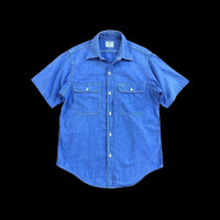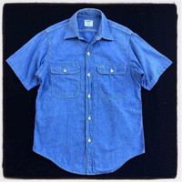 vintage big mac jc penney chambray tag : big mac jc penney size : MEASUREMENTS chest / pit to pit : 21 inches length / shoulder to hem : 27 inches gently used vintage condition, see picture carefully please leave your phone number while purchasing, we need it for shipping terms THANKS & STAY SAFE ... some of the goods are waiting to be yours