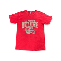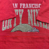 vintage champion san francisco forty niners sf 49ers 1980s single stitch tshirt tag : champion tag size : large MEASUREMENTS chest / pit to pit : inches length / shoulder to hem : inches gently used vintage condition, see picture carefully please leave your phone number while purchasing, we need it for shipping terms THANKS & STAY SAFE ... some of the goods are waiting to be yours