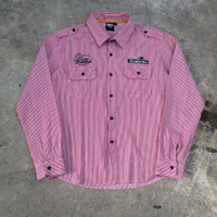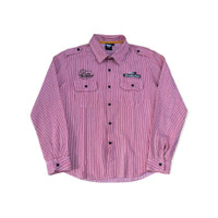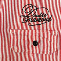 vintage double diamond hickory stripe work shirt tag : double diamond tag size : large MEASUREMENTS chest / pit to pit : 21 inches length / shoulder to hem : 28 inches gently used vintage condition, see picture carefully please leave your phone number while purchasing, we need it for shipping terms THANKS & STAY SAFE ... some of the goods are waiting to be yours