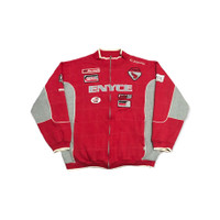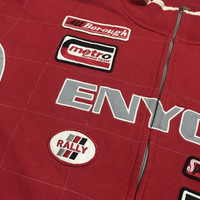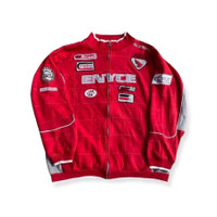Vintage Enyce All Borough Racing Team Moto Street Rally Jacket in red/black with heavy front patch detailing. A standout early-2000s NYC streetwear piece with bold color blocking, oversized racing silhouette, and full multi-patch construction. Rare red variant — highly sought after in Y2K street fashion. Details: • Brand: Enyce • Style: Moto / Racing Team Jacket • Era: Late 90s – Early 2000s • Color: Red / Grey paneling • Size: Tagged Large • Patches: Heavy patchwork across the entire front • Condition: Excellent vintage condition Measurements: • Pit to Pit: 27.5 in • Length: 31 in • Fits like an oversized XL–XXL Collector Notes: • Rare red colorway — harder to find than yellow variants • True Y2K NYC streetwear archive piece • High visual impact and perfect for styling • 100% original, not a remake Enyce (pronounced “EN-NIS”) is: • A New York City streetwear brand popular from 1996 to the early 2000s. • Worn heavily in the hip-hop era by artists like 50 Cent, G-Unit, Fat Joe, Cam'ron, and others. • The vibe combines urban streetwear with moto-racing aesthetics. → That’s why many of their jackets look similar to racing team jackets.