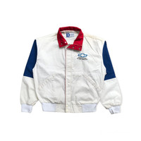 vintage genuine chevrolet racing jacket tag : dunbrooke tag size : large MEASUREMENTS chest / pit to pit : 25.5 inches length / shoulder to hem : 27 inches gently used vintage condition, see picture carefully please leave your phone number while purchasing, we need it for shipping terms THANKS & STAY SAFE ... some of the goods are waiting to be yours!