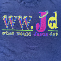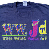 Vintage Jesus Tee What Would Jesus Do ? Quote Tee Tag : FOTL Size : XL Chest / Pit to pit : 24.5 Inches Length / Shoulder to hem : 28.5 Inches used vintage condition, see picture carefully Provide your full phone number for shipping purposes ❤️🔥 Get special price for purchase of two goods or more 🥂 DON'T HESITATE TO OFFER Some of the goods are waiting to be yours!!! Peace & Love Romi