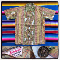 vintage 1950s kamehameha hawaiian shirt tag : kamehameha tag size : large MEASUREMENTS chest / pit to pit : inches length / shoulder to hem : inches gently used vintage condition, see picture carefully please leave your phone number while purchasing, we need it for shipping terms THANKS & STAY SAFE ... some of the goods are waiting to be yours