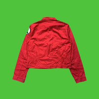 A high-voltage relic of American industrial style. This Maverick Blue Bell trucker jacket is a rare deviation from standard denim, featuring a heavy-duty cotton twill in a striking fire-engine red. The garment is anchored by a period-correct brass Talon zipper and personalized with "Gerald" chain-stitch style embroidery on the chest, adding a layer of authentic blue-collar provenance. As the rugged sibling to Wrangler, Maverick's Blue Bell era represents the pinnacle of durable workwear construction. The cropped, boxy silhouette—synonymous with 1970s utility jackets—remains a foundational piece for modern streetwear and archival fashion enthusiasts. ⸻ HISTORY & RELATED INFLUENCE Blue Bell Overall Company, the parent behind Maverick and Wrangler, established itself as the gold standard for American utility apparel. This specific trucker iteration, produced under Japanese licensing, reflects the global expansion of Western heritage wear. The inclusion of the original Talon hardware and the "Gerald" personification elevates this from simple outerwear to a piece of social history, documenting the era of customized industrial uniforms. ⸻ DETAILS ERA: Vintage 70s / 80s Aesthetic Identity: Maverick Blue Bell Hardware: Original Brass Talon Zipper Construction: Heavy Cotton Twill Origin: Licensed Production (Japan Market Archive) Vibe: Industrial Workwear / Red Hot Americana / Retro Utility ⸻ MEASUREMENTS (Flat Lay) Tag size: Large (40) Chest (pit to pit): 21.5 inches Length (shoulder to hem): 24 inches ⸻ CONDITION Excellent Archival Condition. The red pigment remains vibrant and saturated with minimal signs of industrial wear. All hardware including the Talon zipper and snap buttons are fully functional. The structural integrity of the twill is superior, with the embroidery remaining crisp and intact. A remarkably well-preserved specimen of bold color workwear. ⸻ SHIPPING $45 WORLDWIDE FLAT RATE. Item will be dispatched exclusively via DHL EXPRESS. From the WaroengKartini45 global ecosystem. 3-7 business days worldwide. ⸻ THE WAROENGKARTINI45_ STANDARD Operating as a Global Top 0.1% Seller with a consolidated network of over 800+ total transactions. We are the institutional authority for verified vintage archives and high-value cultural artifacts. ⸻ AUTHENTICITY NOTE Guaranteed authentic vintage. This is an original Maverick Blue Bell licensed garment. Features the period-correct woven label and verified Talon zipper hardware. ⸻ Japanese "Amekaji" Style Collectors Archival Workwear Curators Vintage Americana Fashion Historians Stylists for High-Impact Editorial Projects ⸻ Rare fire-engine red colorway for a Maverick silhouette Original brass Talon zipper provenance Authentic "Gerald" embroidery adding unique storytelling value High-demand boxy/cropped fit for modern styling