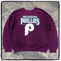 vintage philadelphia phillies sweatshirts crewneck tag : hanes tag size : large MEASUREMENTS chest / pit to pit : 23 inches length / shoulder to hem : 26 inches gently used vintage condition, see picture carefully please leave your phone number while purchasing, we need it for shipping terms THANKS & STAY SAFE ... some of the goods are waiting to be yours