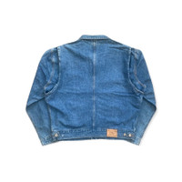 vintage polo ralph lauren denim work jacket made in usa tag : polo ralph lauren tag size : medium MEASUREMENTS chest / pit to pit : 26 inches length / shoulder to hem : 26 inches gently used vintage condition, see picture carefully please leave your phone number while purchasing, we need it for shipping terms THANKS & STAY SAFE ... some of the goods are waiting to be yours