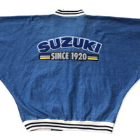 This vintage Suzuki batwing-style denim jacket represents a rare intersection of Japanese automotive heritage and late-20th-century motorsport fashion culture. Produced as a promotional or internal brand garment, this piece reflects Suzuki’s global expansion era when lifestyle apparel became an extension of racing identity. The exaggerated batwing cut and bold rear embroidery elevate it beyond standard workwear into archive-grade brand memorabilia. ⸻ HISTORY & RELATED INFLUENCE During the late 1980s to early 1990s, Japanese manufacturers such as Suzuki, Honda, and Yamaha began releasing branded apparel tied to racing teams, dealerships, and motorsport events. Batwing silhouettes were especially popular in this period, influenced by Western varsity jackets and motorcycle paddock wear. This jacket aligns with that era—pre-mass merch, limited production, and never intended for retail saturation—making surviving examples scarce today. ⸻ DETAILS • Brand: Suzuki • Era: Late 1980s – Early 1990s • Style: Batwing / Dolman sleeve denim jacket • Fabric: 100% cotton denim • Closure: Full zip front • Graphic: Embroidered “SUZUKI Since 1920” back logo • Color: Indigo blue • Origin: Japan-branded licensed production ⸻ SIZE & MEASUREMENTS (measured flat) • Chest (pit to pit): 27 inches • Length (shoulder to hem): 27 inches • Fit: Oversized batwing — fits Medium up to XL depending on desired silhouette ⸻ CONDITION Excellent vintage condition. Fabric remains strong with natural age character. Embroidery is intact and vibrant. No structural damage. Archive-grade wearable condition. ⸻ SHIPPING Worldwide shipping available. Item will be professionally packed for international transit, suitable for long-term archival storage or collector display. ⸻ Why buy from WAROENGKARTINI45_? We specialize in museum-positioned vintage garments, focusing on cultural relevance, authenticity, and historical context. Every piece is curated, documented, and priced according to global top-tier collector standards. ⸻ AUTHENTICITY NOTE This is an original vintage Suzuki jacket from the late 20th century. Not a reproduction. Not a modern reissue. ⸻ • Japanese motorsport collectors • Vintage racing & automotive historians • Avant-garde fashion collectors • Archive stylists and costume departments • Rare batwing construction not used in later Suzuki apparel • Large-format embroidered back graphic (not printed) • Pre-2000s Japanese motorsport branding • Excellent condition with strong collector crossover (fashion + automotive) • Scarcity: almost no active market comparables This item is positioned as a rare non-retail automotive archive piece, not mass merchandise. Comparable Japanese motorsport jackets rarely surface and are often privately traded.