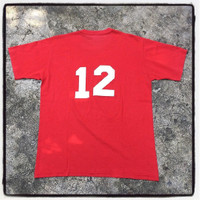 vintage tshirt russell athletic no 12 tag : russell athletic tag size : medium MEASUREMENTS chest / pit to pit : 20 inches length / shoulder to hem : 26 inches gently used vintage condition, see picture carefully please leave your phone number while purchasing, we need it for shipping terms THANKS & STAY SAFE ... some of the goods are waiting to be yours