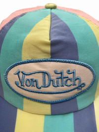 vintage von dutch striped trucker hat tag : von dutch size : osfa gently used vintage condition, see picture carefully please leave your phone number while purchasing, we need it for shipping terms THANKS & STAY SAFE ... some of the goods are waiting to be yours