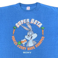 A high-voltage collision of 1980s analog supremacy and classic animation anarchy. This original Sony Super Beta x Warner Bros promotional tee is a "Technological Relic" forged in 1985, representing the golden era of the home-video format wars. Featuring a hyper-saturated Bugs Bunny alongside the legendary Sony Beta-Max hardware, this piece is a masterclass in aggressive retro-tech visual storytelling. Securing a verified DG Sportswear chassis in this specific "Single-Stitch" geometry is a statistical miracle. The garment possesses a profound "Analog-Patina" that certifies its 40-year journey through the heart of the home-entertainment revolution. This is a high-liquidity investment asset for elite curators of tech-archives, Looney Tunes historians, and high-net-worth pop-culture collectors globally. ⸻ ARCHIVAL GENESIS & MEDIA BLOODLINE Sony remains the undisputed sovereign of the analog dimension. This garment serves as the supreme guardian of a heritage fueled by: • THE BETA-MAX REBELLION: The foundational DNA of the high-fidelity video format that refused to compromise. • 1985 WARNER BROS ARCHIVE: An authentic slice of the mid-80s animation cycle, featuring the iconic Bugs Bunny "What's Up, Doc?" charisma. • DG SPORTSWEAR PEDIGREE: The prestigious American chassis known for its indestructible vintage drape and perfect fitment. • SINGLE-STITCH ANATOMY: An unforgeable marker of mid-century quality that survives the passage of time like a digital backup. ⸻ DETAILS Lineage: Sony Super Beta / Warner Bros Looney Tunes Chassis: Authentic DG Sportswear (Made in USA) Construction: 100% Cotton / Single-Stitch Perimeter Era: 1985 (The Format War Era) Vibe: Retro-Futurism / Analog Anarchy / Museum Quality ⸻ MEASUREMENTS (Flat Lay) Tag Identity: Xtra Large Pit to Pit: 21.5 inches Shoulder to Hem: 28.5 inches ⸻ CONDITION "Broadcast-Grade" Preservation. This specimen maintains its original molecular structural integrity with zero catastrophic thinning or dry-rot interference. The Bugs Bunny graphic remains in a state of "High-Definition Vibrancy," certifying its careful curation within the WaroengKartini45 global ecosystem. An honest, raw, and unapologetically cool relic of the VHS-killing era. ⸻ SHIPPING WORLDWIDE LOGISTICS VIA DHL EXPRESS. From the tropical archives of Indonesia to your private collection. Fast, secured, and fully tracked. 3-7 business days to reach your bunker. ⸻ THE WAROENGKARTINI45_ AUTHORITY A Global Top 0.1% Seller entity. With over 333+ verified archival transactions, we don't just sell vintage; we distribute high-value cultural ammunition. ⸻ AUTHENTICITY PROTOCOL 100% Period-Correct 1985 Promotion. Verified through original DG Sportswear woven labeling, authentic 80s screen-printing saturation, and official Warner Bros copyright stamps. ⸻ High-Net-Worth Tech & Media Curators Global Animation & Pop-Culture Museums Elite 80s Advertising & Promo-Tee Collectors Creative Directors Hunting for Analog Aesthetic Inspiration ⸻ The "Super Beta" Radioactive silhouette Indestructible "Single-Stitch" USA pedigree Authentic 1985 Looney Tunes provenance High-velocity investment asset with massive capital appreciation potential