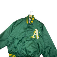 Vtg MLB Major League Baseball National League Oakland Athletics Satin Bomber Jacket