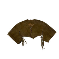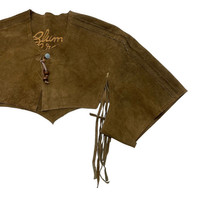 Genuine Leather - Vintage Genuine Suede Leather Crop Frindge Cowboy Jacket