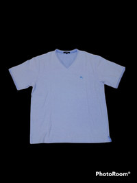 Nice v neck burberry london t shirt. Good used condition. No holes & stains foreseen (please see pics highlighted). Measurements laying flat in inches: Chest 21.5 in Length 27 in Open for negotiation and offer.. No worries Shipped via expedited/express shipping. Receiving the item within 5-8 business days depends on countries. Pls provide phone number for shipping purpose. Sold as is. Thank you for your interest Have a nice day ahead