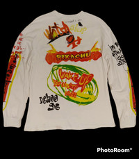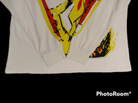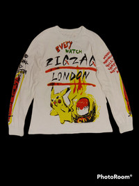 Awesome very rare full print sweatshirt pikachu pokemon london multicolor. FITS L/XL From my personal collection. Nice Multicolor print & white with the image. Got some stains as of white tshirt. Pls refer pics highlighted. Good used cool vtg condition. No hole. The rest is leave it to you. Pls Refer Measurements. 100% soft cotton. Pls kindly ask me for further details if any. Open for negotiation and offer.. No worries Sold as is. Can shipped via economy/expedited or express Pls provide phone number for shipping purpose Thank you for your interest & support. Have a nice day ahead